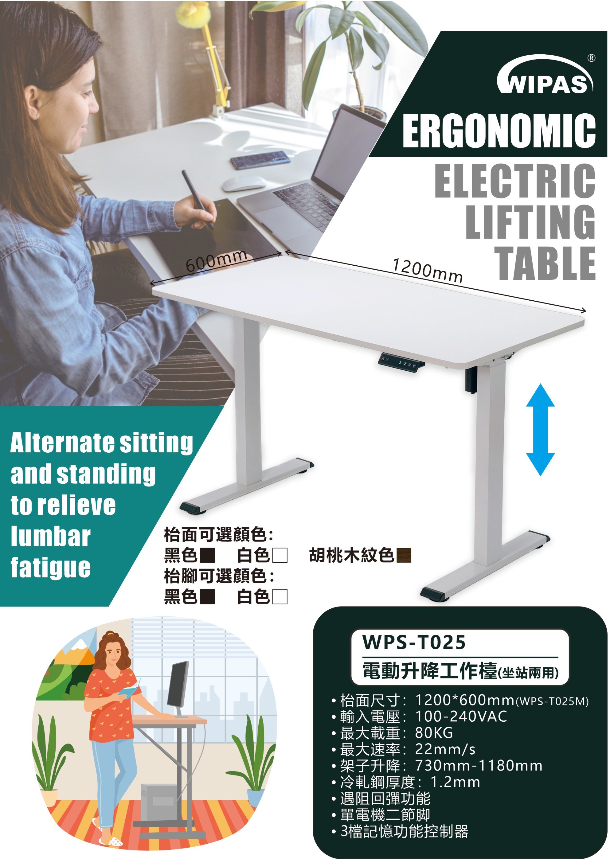 人體工學電動升降辦公檯(WPS-FDE104)