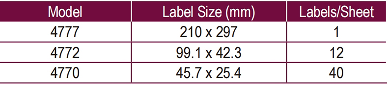 型號 / Size / / 每頁標籤數量: