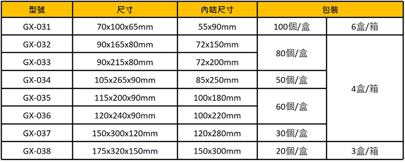 GX-038 / 175x320x150mm / 150x300mm / 個