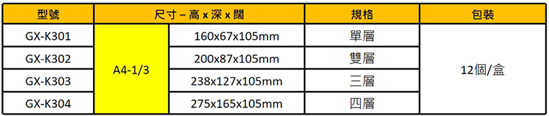 GX-K301直款 / A4-1/3 160x67x105mm / 單層 / 個