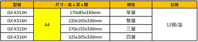 GX-K316H橫款 / A4 325x205x330mm / 四層 / 個
