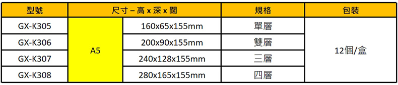 GX-K306直款 / A5 200x90x155mm / 雙層 / 個