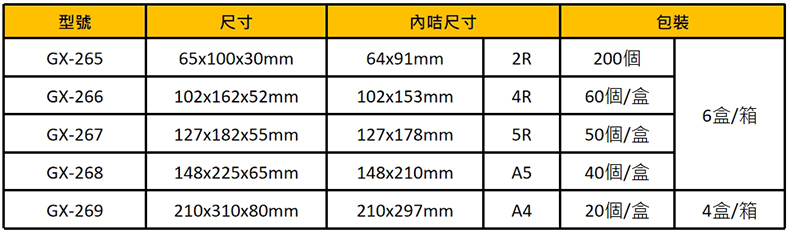 GX-267直款 / 127x182x55mm / 5R 127x178mm / 個