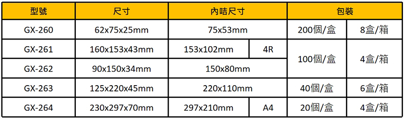 GX-261橫款 / 160x153x43mm / 4R 153x102mm / 個