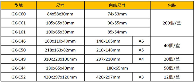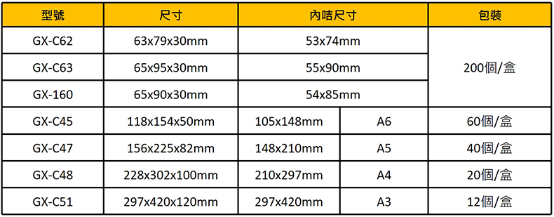 GX-C46橫款 / 160x110x40mm / A6 148x105mm / 個