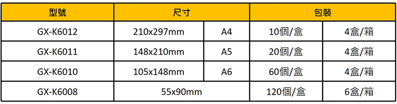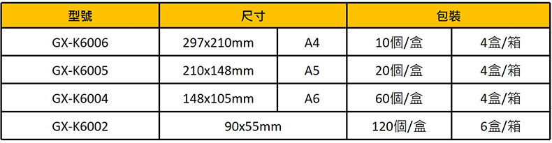 GX-K6006直款 / A4 297x210mm / 個