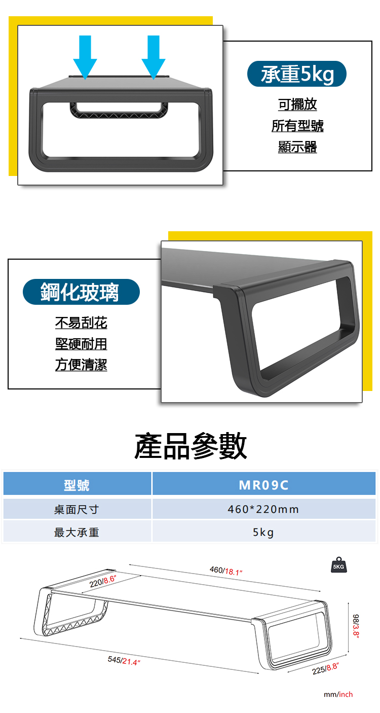 顯示器增高座配備USB3.0插口(WPS-MR09)