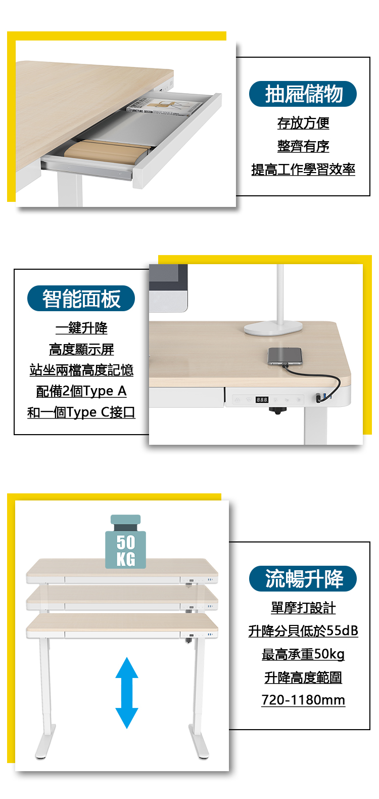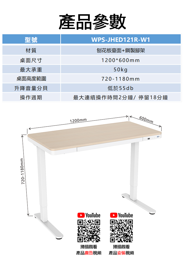 電動升降辦公工作檯配USB插口(WPS-JHED121R-W1)